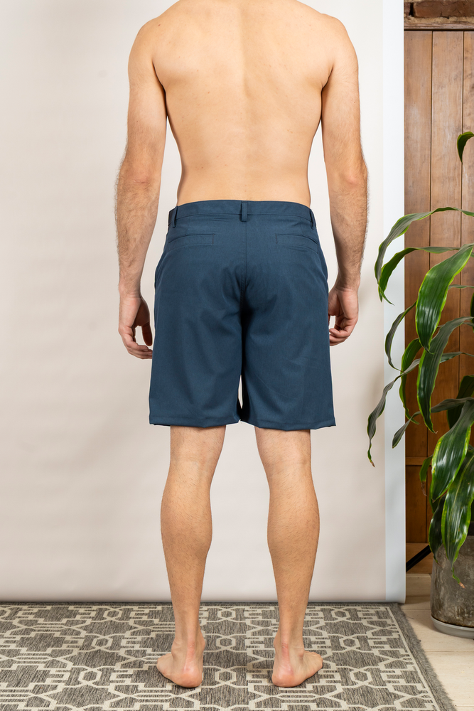 Bermuda de baño liso microfibra elastizada.Secado rapido. Boton goma negro, bordado a tono. Largo 19”.