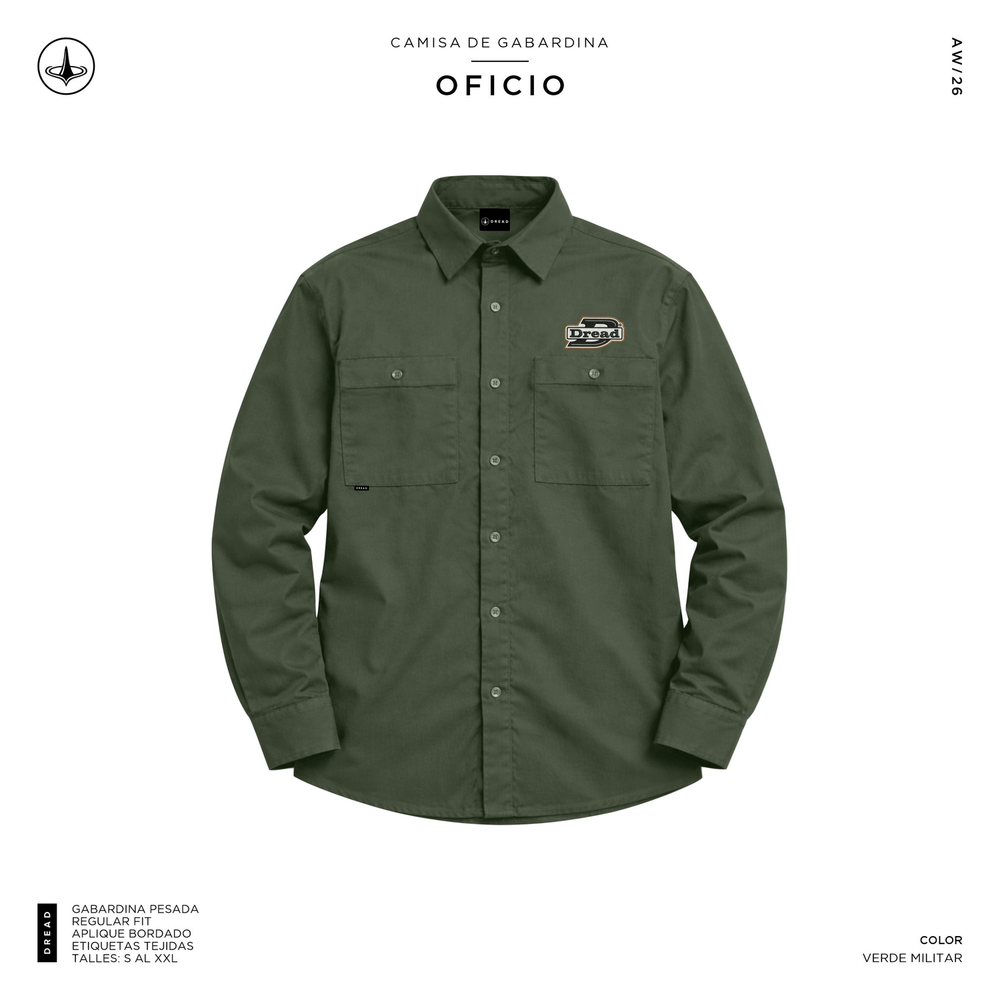 Camisa Gabardina Pesada, corte regular fit, etiquetas tejidas en pecho.