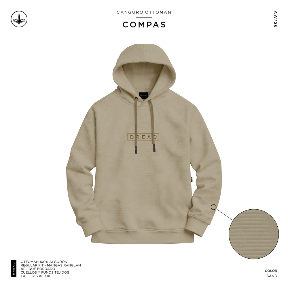 Canguro OTTOMAN OVERSIZE, 100% algodon, bordado 3D en pecho. Puño, cintura y capucha pisado doble aguja collareta. Detalle de apliques bordados.
