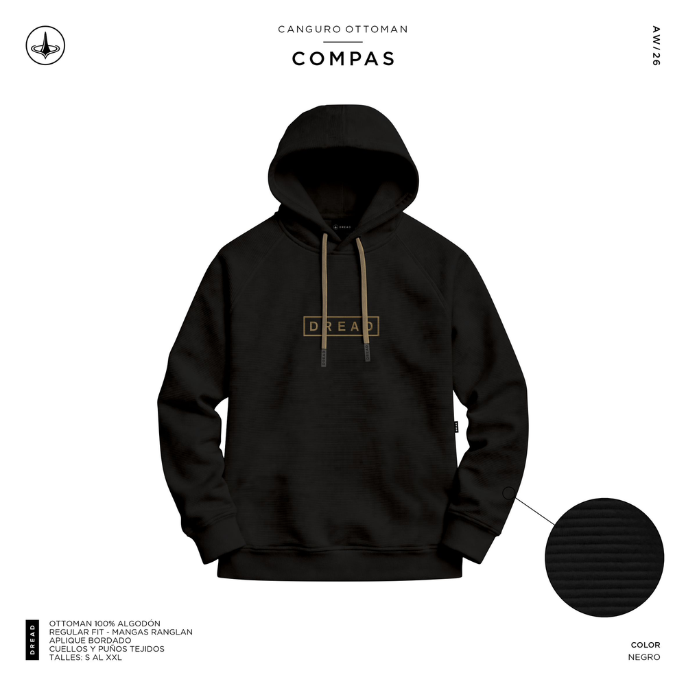 Canguro OTTOMAN OVERSIZE, 100% algodon, bordado 3D en pecho. Puño, cintura y capucha pisado doble aguja collareta. Detalle de apliques bordados.