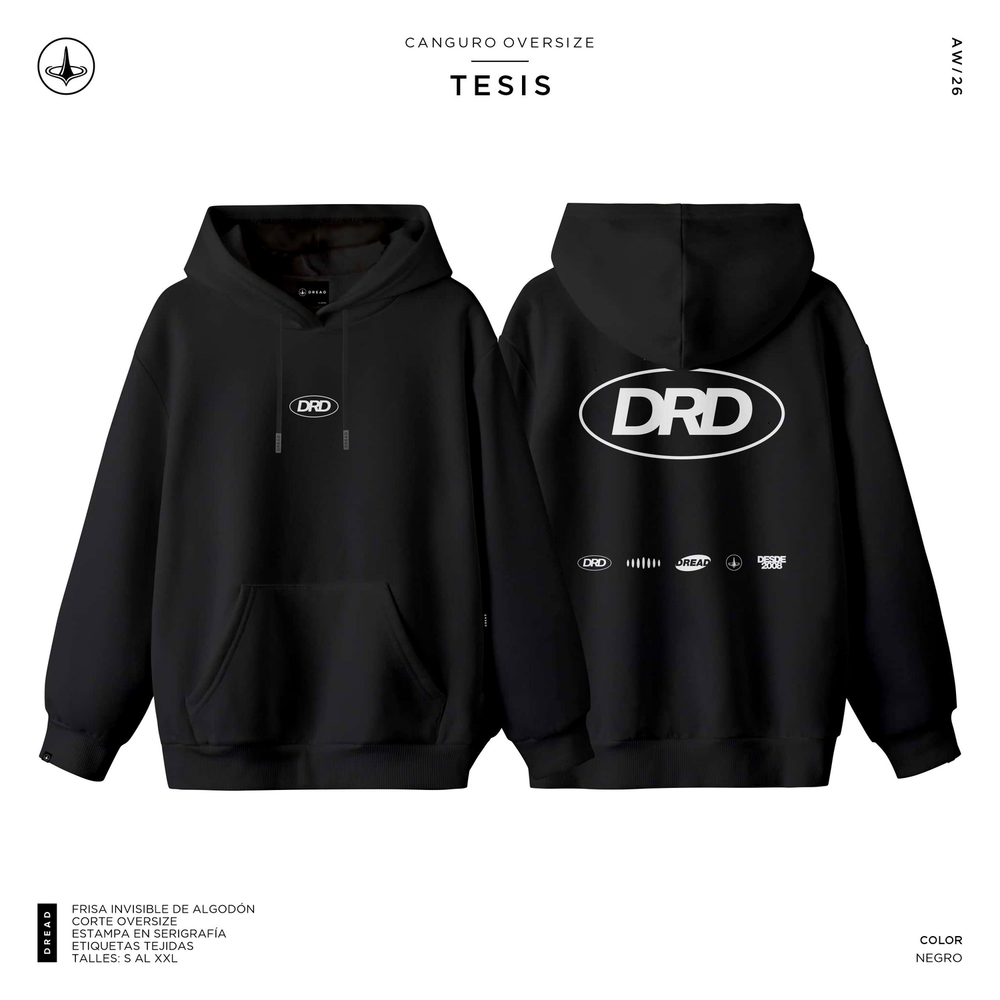 Canguro frisa pesado OVERSIZE, 100% algodon, estampado en pecho y espalda. Puño, cintura y capucha pisado doble aguja collareta. Detalle de punteras y ojales personalizados Black Nikel.