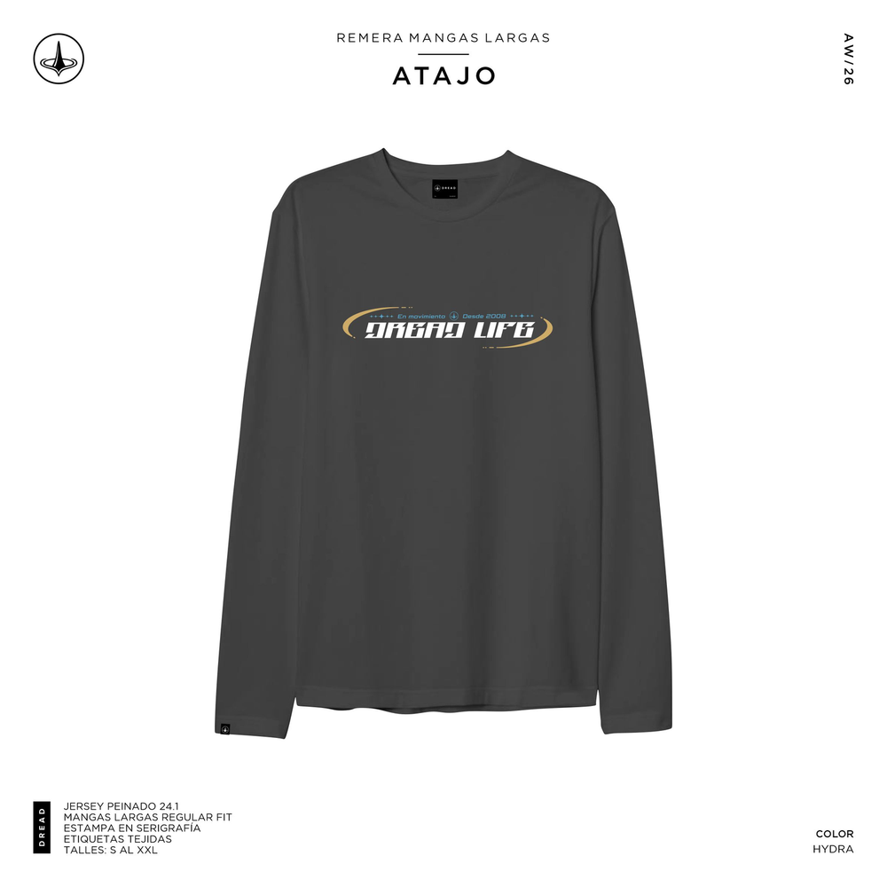 Remera clasica manga larga algodón peinado 24/1. Estampa al agua en serigrafia.